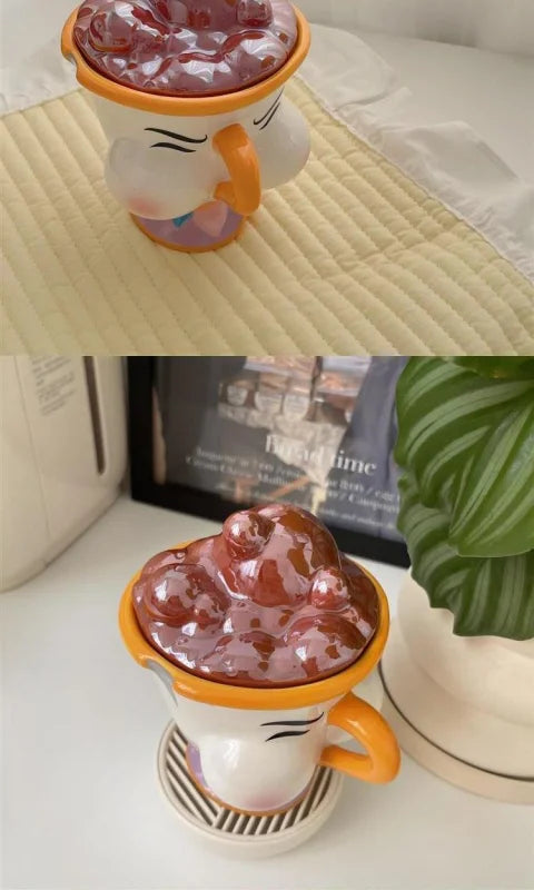 Caneca de cerâmica Disney Bela e a Fera com tampa